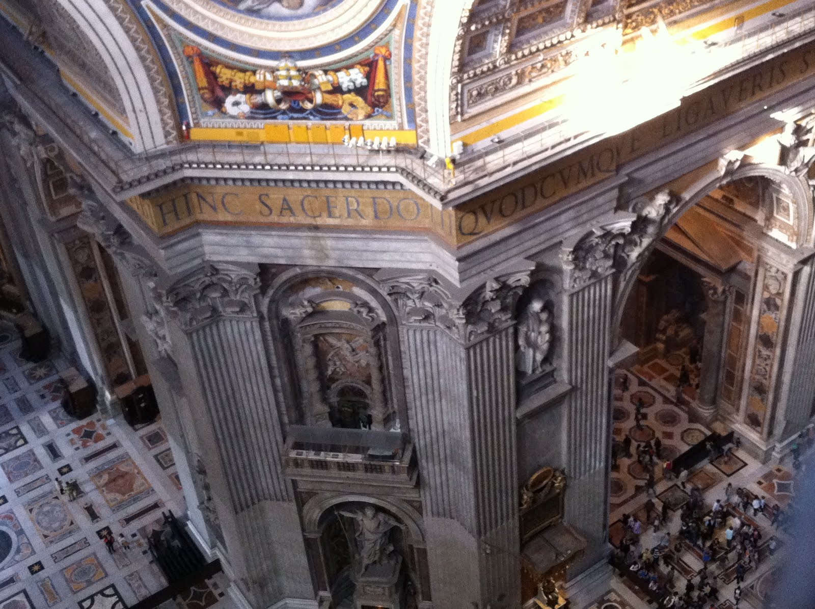 Views from the inner dome...the quote in Latin is from the Gospel... "Upon this rock [Peter/petra] I will build my church. (Mt 16:18)"